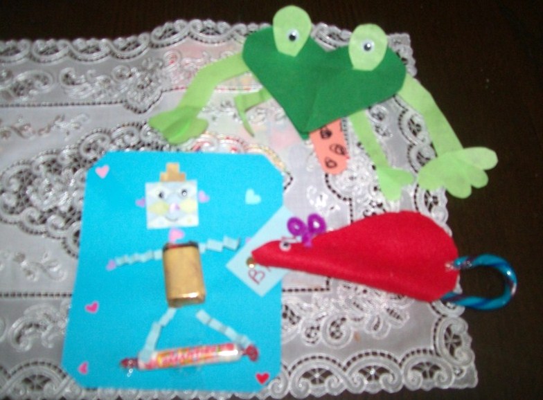 We had lots of fun with Valentine crafts. Days later, I keep stepping on plastic googly eyes to prove it. One night we made chocolate bar robots. Actually, Henry and I glued the picture pieces on cardstock while Liam ate the chocolates. He was stuffing those mini bars in his mouth faster than I could reach across the table. He must have thought he'd won the lottery. We also made heartfelt mice with candy tails. Get it? Felt hearts, heart felt? Sorry, I'm tired--things sound wittier when I'm tired.